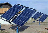 Gudmundson's 16-panel solar electric system, also installed in December by Sunelco, includes two Kyocera 120-watt solar modules that produce 7.1 amps at 16.9 volts. Both arrays are mounted on Zomeworks racks that track the sun.